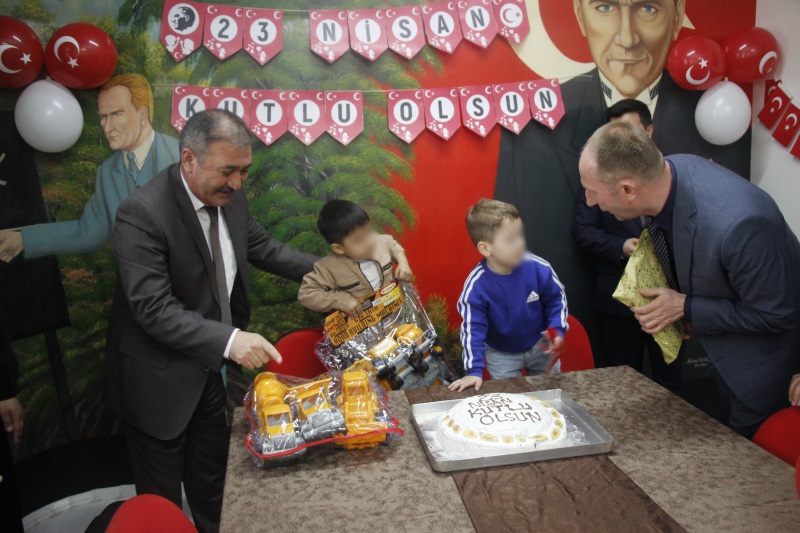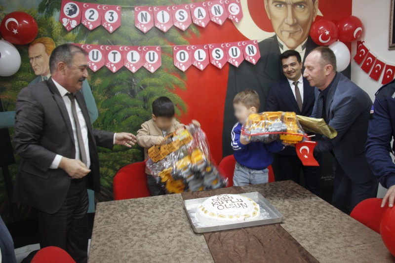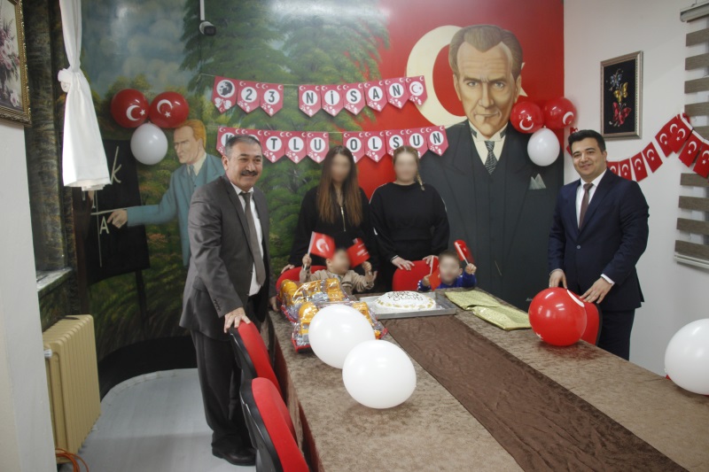 Kurumumuz Psikososyal Servis Birimi tarafından planlanan ve organize edilen etkinliğe 23 Nisan Ulusal Egemenlik ve Çocuk Bayramı kapsamında kurumumuzda anne yanında kalan çocuklar için tertiplenen pasta kesim töreni ve çocuklara hediye takdimi ile devam edilmiştir. Günün anlam ve önemini belirten konuşmadan sonra, çocuklar için alınan hediyeleri takdim etmiştir.