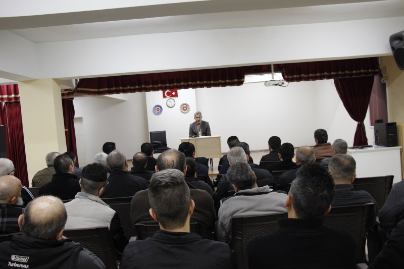 Kurumumuzda bulunan hükümlü ve tutukluların manevi yönden desteklenmesi, dini ve ahlaki gelişimlerinin arttırılması amacıyla İlçe Müftülüğü personeli Hasan ÇETİNER ve Ahmet KORKMAZ tarafından Miraç Kandili programı icra edildi. Kur’an-ı Kerim tilavetiyle başlayan program ilahi dinletisiyle devam etti. Miraç Kandili’nin anlam ve öneminin belirtildiği konuşmanın ardından kurumumuzda gönüllü hükümlü ve tutukluların katılımıyla okunan Hatm-i Şeriflerin ve Yasin-i Şeriflerin duası yapılarak program sona erdi.