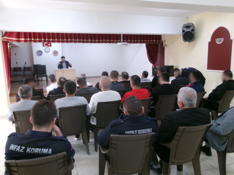 Kurumumuzda bulunan hükümlü ve tutukluların manevi yönden desteklenmesi, dini ve ahlaki gelişimlerinin arttırılması amacıyla İlçe Müftülüğünde Din Hizmetleri Uzmanı olarak görev yapan Sayın Yusuf SEZGİN tarafından 16.04.2026 tarihinde “Peygamberimizin Eşlerinin Ahlaki Eğitimine Önem Vermesi ve Evdeki Örnek Davranışları” konulu konferans düzenlendi.